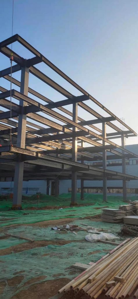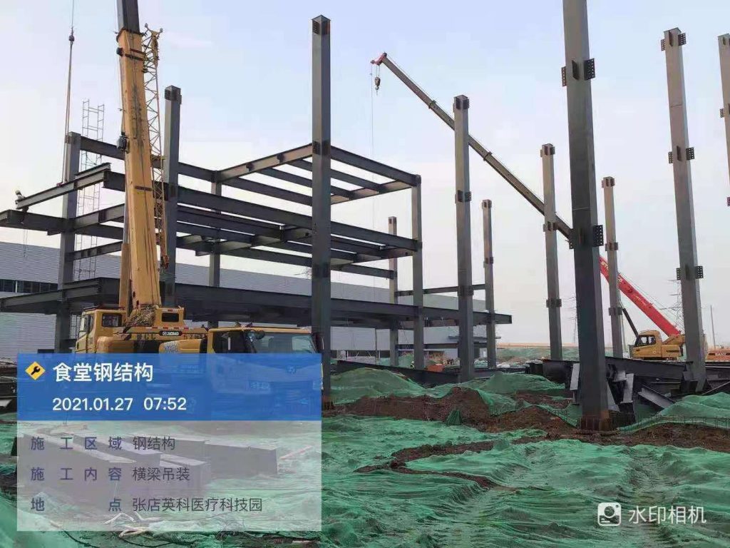 整體框架包含梁柱等,體量350噸左右,占地700平,即將完工,主結(jié)構(gòu)完成。