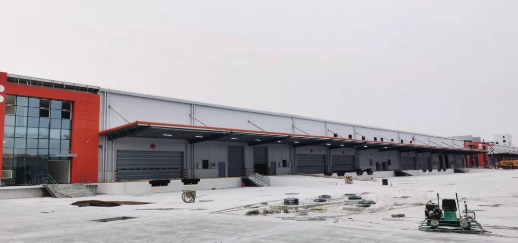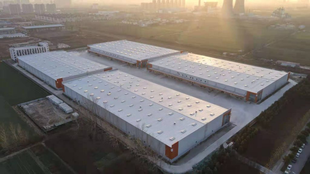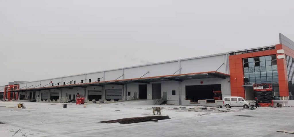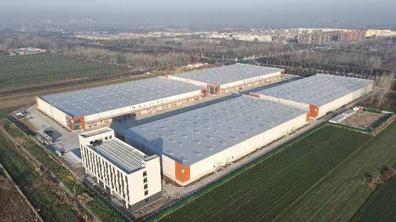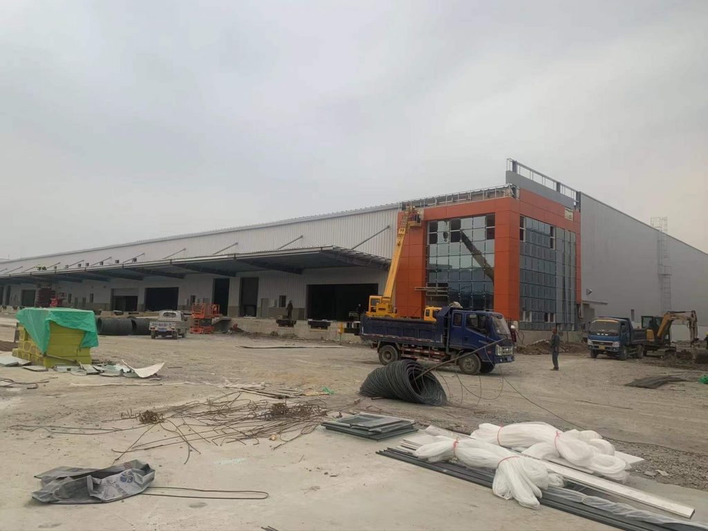 參建豐樹駐馬店現(xiàn)代物流園項(xiàng)目由4個(gè)單體倉(cāng)庫(kù)組成,檐口高度為10.2米。工程地點(diǎn)位于河南省駐馬店市創(chuàng)業(yè)大道與汝寧大道交叉口東南側(cè)。本工程鋼結(jié)構(gòu)安裝的主要構(gòu)件有鋼柱、屋面梁及支撐桿件、柱間支撐、水平支撐、檁條、圍護(hù)板材等。