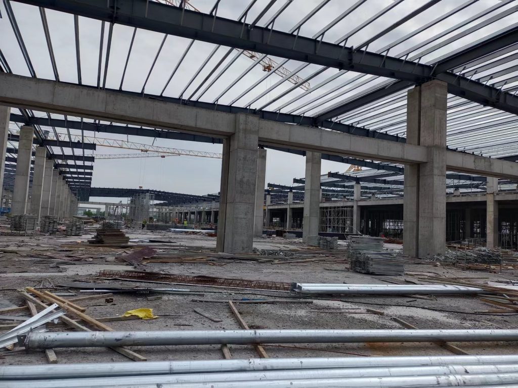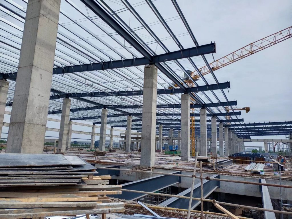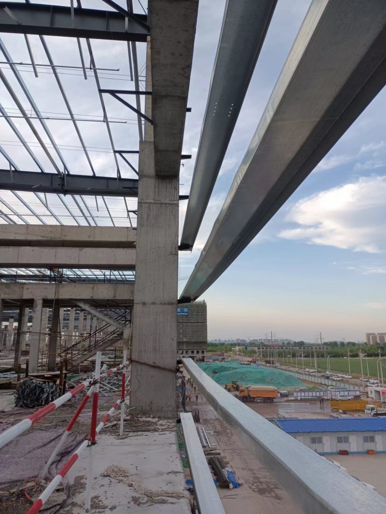 青島即發(fā)智能化紡紗車間項目由1個單體倉庫建筑面積約 49892 ㎡,其余部分為土建附屬用房組成;檐口高度為7.3米。工程地點位于山東省青島市即墨區(qū)龍山街道即發(fā)集團龍山工業(yè)園內(nèi)。本工程鋼結(jié)構(gòu)安裝的主要構(gòu)件有鋼柱、屋面梁及支撐桿件、柱間支撐、水平支撐、屋面檁條、屋面圍護板材等。